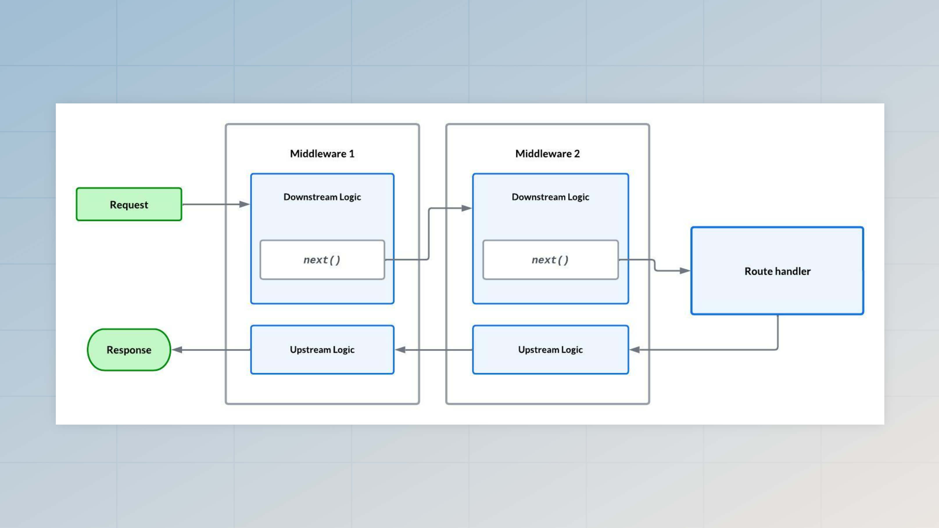 Middleware execute in two phases: the downstream phase and the upstream phase. Understanding this flow is crucial for knowing where to place your logic within a middleware.